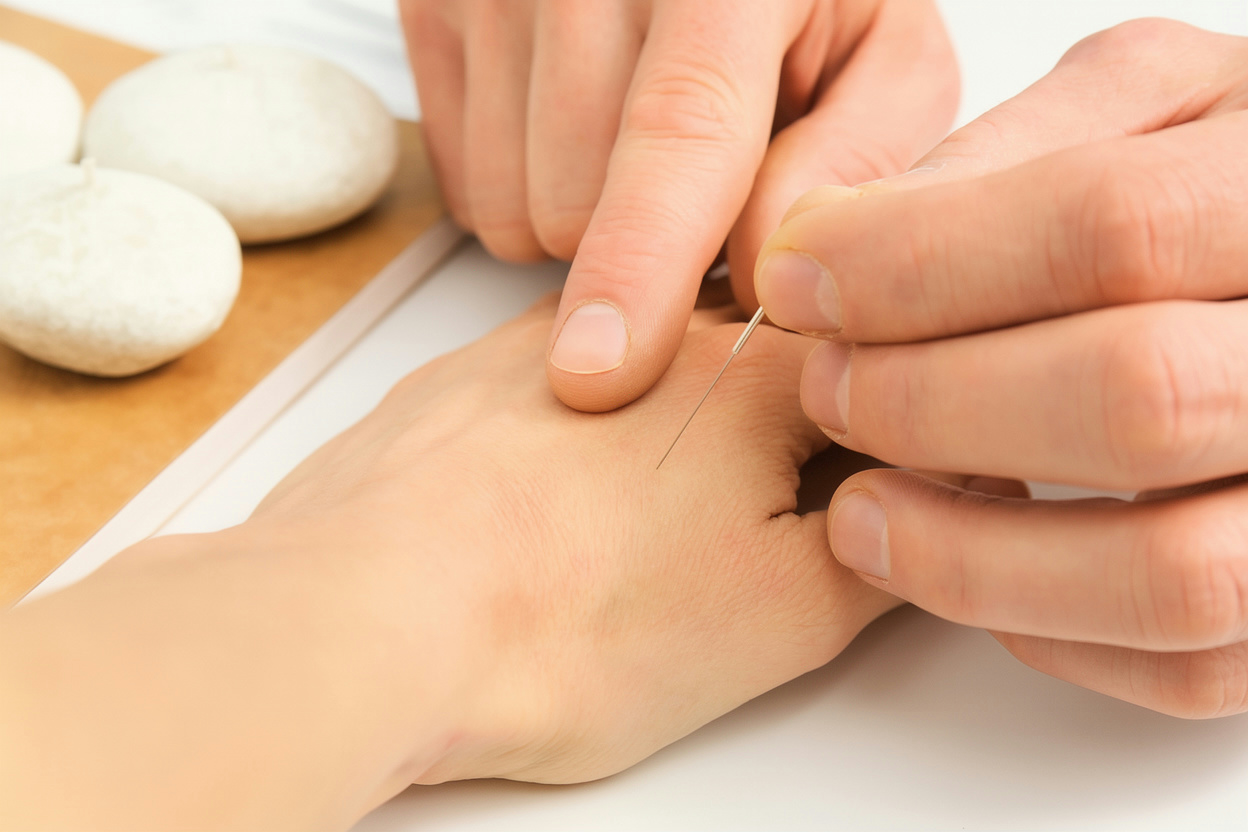 Fine, sterile needles are inserted at carefully selected acupoints. The number of needles varies, but most clients receive roughly 6–15 per session. Sensations are usually mild — often a dull ache, heaviness, or gentle spreading feeling.